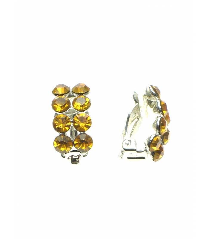 Donker Gele Halfronde Oorclips met Glas Steentjes - Stralende Elegantie voor Je Oren Laat jezelf betoveren door onze prachtige donker gele halfronde oorclips, versierd met schitterende glas steentjes. Deze oorsieraden stralen stralende elegantie uit en zijn perfect voor vrouwen die op zoek zijn naar een vleugje glamour in hun stijl. Of je nu een speciale gelegenheid hebt of je dagelijkse look wilt verfraaien, deze oorclips voegen een vleugje klasse toe aan elke outfit. Stralende Geel en Glans Onze donker gele halfronde oorclips worden gekenmerkt door een diepe en stralende gele kleur die zeker de aandacht trekt. De glas steentjes voegen een schitterende glans toe aan het ontwerp, waardoor deze sieraden je oren laten stralen. De combinatie van de rijke kleur en de glans straalt tijdloze klasse uit.
