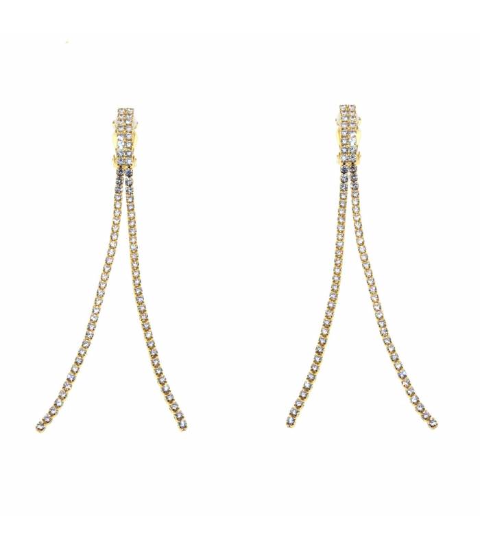 Deze goudkleurige oorclips zijn voorzien van fonkelende stras steentjes die bij elke beweging schitteren. Ze voegen een vleugje glamour toe aan zowel dagelijkse als feestelijke outfits. De klassieke uitstraling maakt ze een tijdloze aanvulling op uw sieradencollectie.