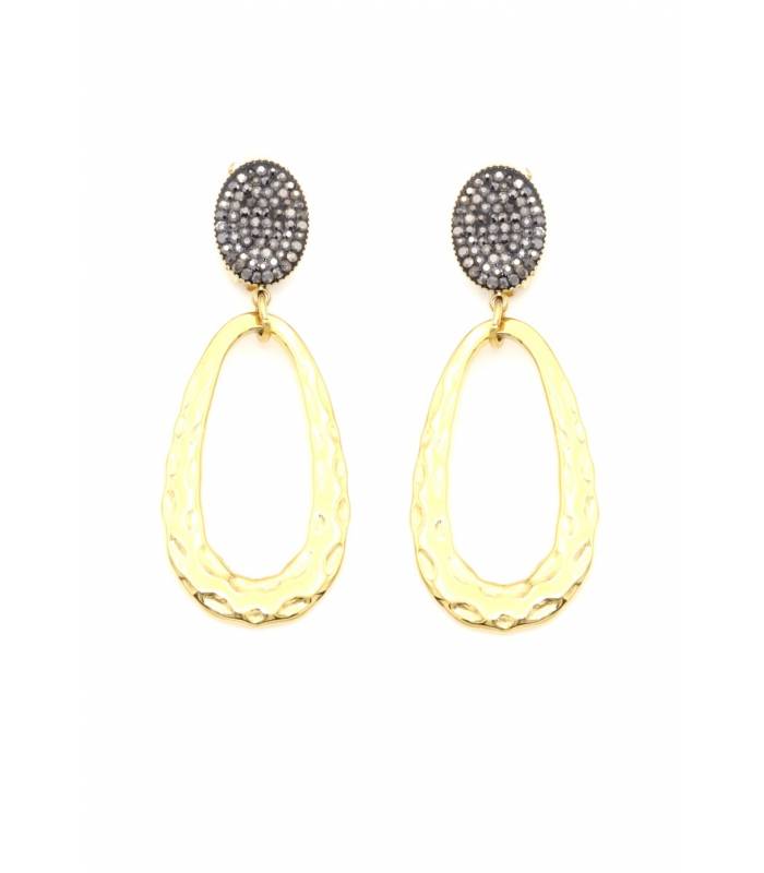 Fashion oorclips goudkleurig met donkere strass steentjes