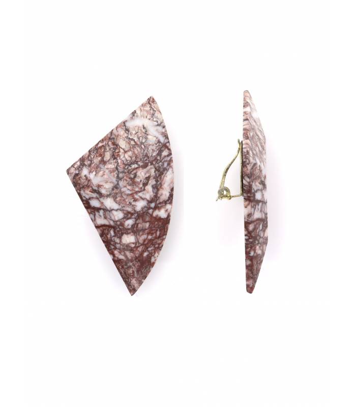 Hoe combineer je kracht en elegantie in een accessoire? Deze oorclips met marmerprint in bruine en witte tinten stralen natuurlijke luxe uit. De scherpe, geometrische vorm geeft een modern silhouet, terwijl het steenachtige patroon zorgt voor een modieuze uitstraling. Statement design. De zachte rubbertjes maken dragen zonder gaatjes moeiteloos. Een krachtig paar oorclips voor wie durft te kiezen voor vorm en textuur.