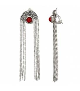 Oorclips met opvallende rode kraal en zilverkleur strengen. De lengte van deze oorclip is circa 6,5 cm. Voor oren zonder gaatjes. De klemoorbellen zijn nikkelvrij. De oorclips zijn voorzien van zachte rubbertjes.