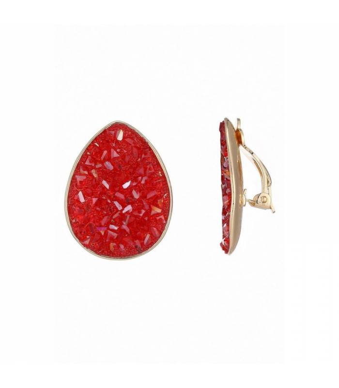 Hoe geef je een outfit in een keer impact? Met deze oorclips in vurige roodtint en druppelvorm. De glinsterende structuur en speelse textuur vangen het licht perfect en zorgen voor een glimmend effect met een stoer randje. Stijlvol zonder gaatjes De stevige clip sluiting maakt ze ideaal voor iedereen zonder oor gaatjes. De gouden omlijsting geeft de rode steen extra diepte, waardoor deze fashion oorbellen een echte statement vormen bij zowel casual als feestelijke looks.