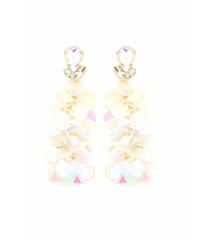 Hoe combineer je subtiele glans met opvallende flair? Deze witte oorclips doen het moeiteloos. De iriserende schijfjes vangen elk licht en reflecteren pastelkleuren die je look doen oplichten. Perfect voor bruiloften, feestjes of een stijlvolle avond uit. De kristalvormige steen aan de bovenzijde geeft net dat extra beetje sprankel dat je outfit compleet maakt. Trendy en comfortabel Deze fashion oorclips zijn niet alleen een visueel statement, maar zitten ook prettig zonder gaatjes. De zachte rubbertjes zorgen voor een fijne pasvorm. Voeg ze toe aan je sieradencollectie voor een unieke touch die opvalt en past bij elke gelegenheid.