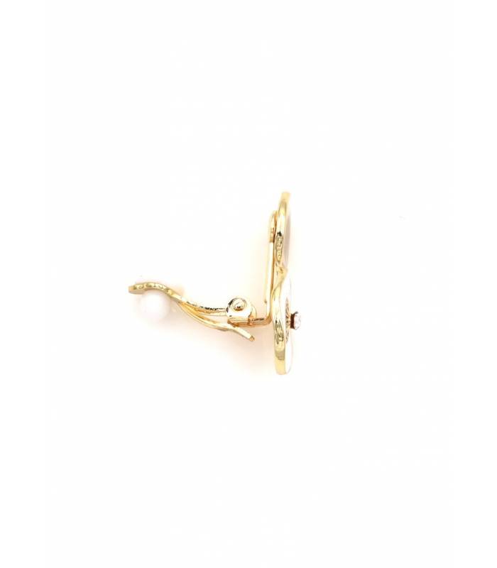 Hoe trek je subtiel de aandacht zonder te overdrijven? Deze oorclips combineren glanzend wit met een goudkleurige rand en fonkelend steentje in het midden. Een stijlvolle mix van elegantie en speelsheid, ideaal voor wie houdt van verfijnde statement oorclips en glinsterende details. Verfijnd en licht te dragen De ronde vorm en zachte kleuren maken deze oorclips perfect voor zowel casual chic als feestelijke gelegenheden. Door het lichte materiaal en de zachte pads zijn ze aangenaam om te dragen, ook zonder gaatjes.